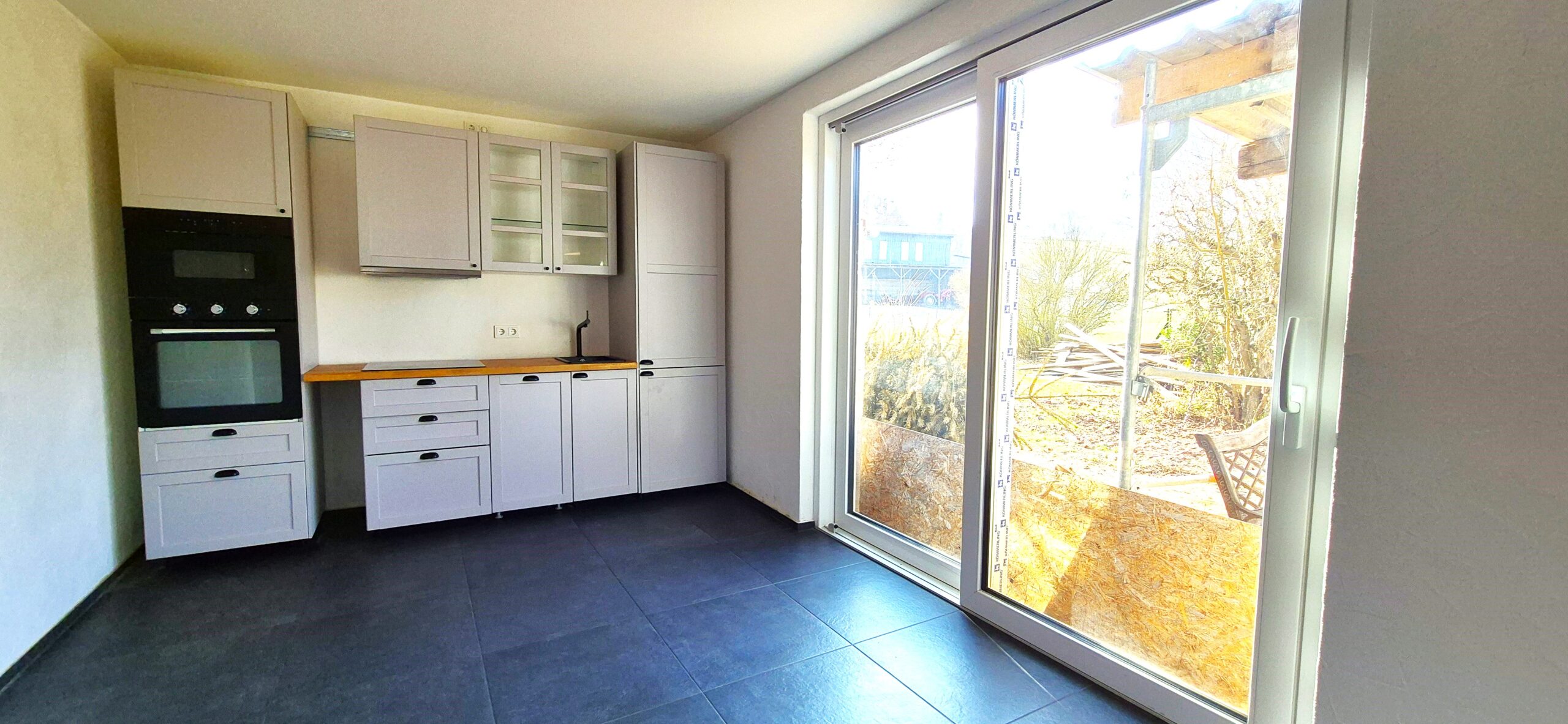 Im Erdgeschoss verfügt die Immobilie über ein Schlafzimmer, eine Küche, ein Bad und ein geräumiges Wohn- und Esszimmer, welches einen direkten Zugang zur geplanten Terrasse ermöglicht. Die Wohnfläche beträgt in dieser Wohneinheit ca. 72 m².